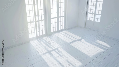 © huiying, Obraz premium Stylish Minimalist Interior with Expansive Window, Natural Light, and Serene Atmosphere. Modern Aesthetics and Negative Space Design