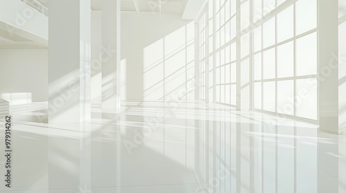 © huiying, Obraz premium Stylish Minimalist Interior with Expansive Window, Natural Light, and Serene Atmosphere. Modern Aesthetics and Negative Space Design