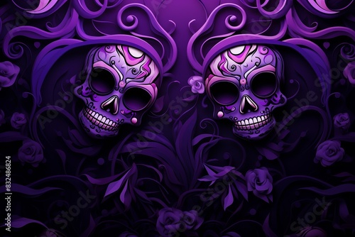 © Xyeppup, Fototapeta premium Stylish modern background celebrating Dia de los Muertos, abstract in deep purple and black, flowing lines