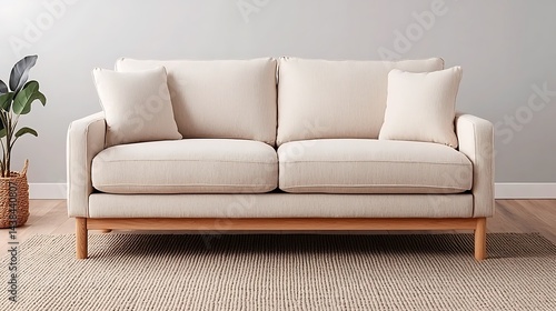 Fototapeta premium Stylish modern sofa with cushions in a living room setting, showing...