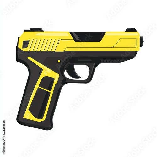 Fototapeta premium Stylish modern yellow-black gun design, white isolated background.