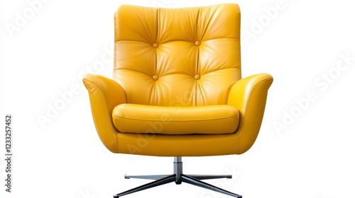 © Patchayanit , Naklejka premium Stylish Modern Yellow Leather Chair with Soft Cushions and Design