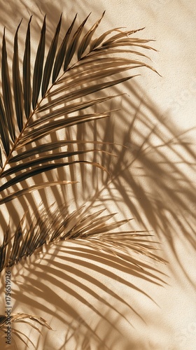 Obraz premium Stylish neutral palm leaves and shadows creating a warm tropical vibe