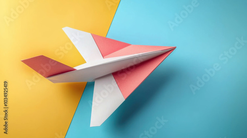 © khemthong, Naklejka premium stylish paper airplane on colorful geometric backgrounds