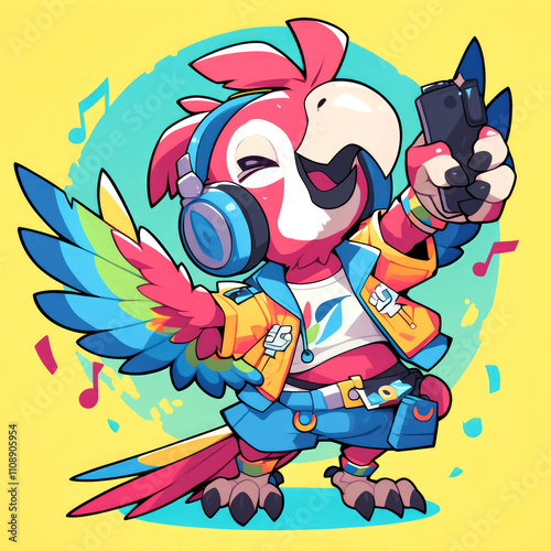Fototapeta premium Stylish parrot DJ taking a selfie.