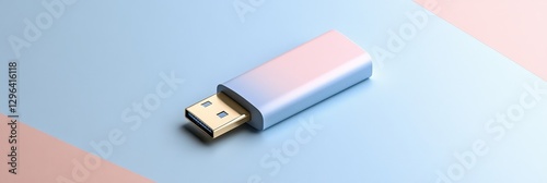 Fototapeta premium Stylish Pink and Blue USB Flash Drive - A modern pastel pink and blue USB flash drive on a light blue and pink background. Ideal for tech, data storage, and concepts