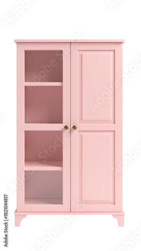 Obraz premium Stylish pink cabinet with glass doors and shelves, perfect for displaying...