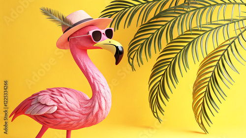 Obraz premium Stylish Pink Flamingo with Tropical Vibes