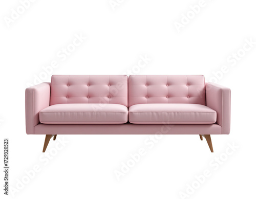 Fototapeta premium Stylish Pink Sofa with Wooden Legs for Modern Living Room Decor