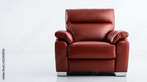 © adniluy, Fototapeta premium Stylish red leather armchair on a minimalist white background, perfect for modern interior design
