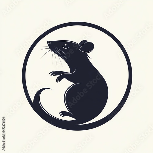© Priyanut, Naklejka premium Stylish Rodent Silhouette in Circular Frame A Charming Vector Illustration