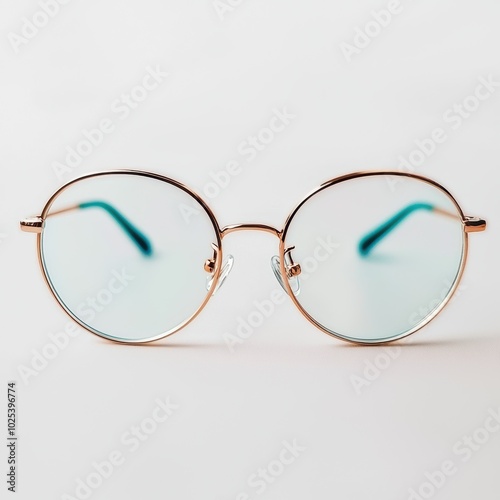 © Tuyres, Fototapeta premium Stylish Round Glasses with Tinted Blue Lenses on White Background. Generative AI.