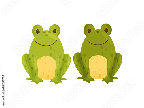 © Happypictures, Obraz premium Stylish salt and pepper shaker in the form of frogs. Vector illustration.