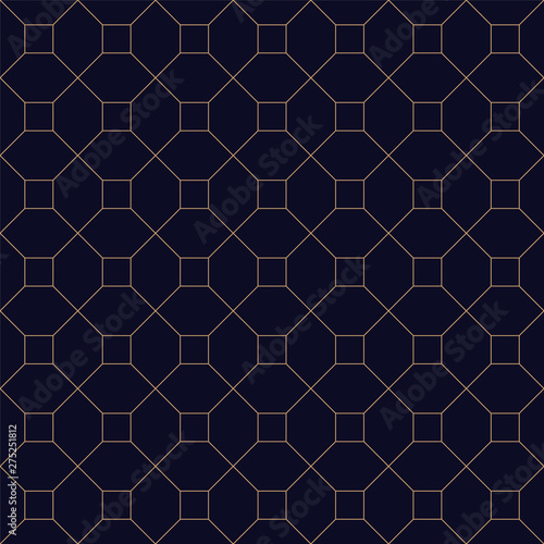 Fototapeta premium Stylish seamless blue geometric background. Grid repeatable golden pattern -...
