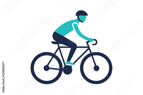Fototapeta premium Stylish Silhouette Person Biking with Helmet on Bicycle, Modern Design Elements