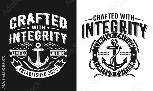 © Vectyx, Obraz premium Stylish T-Shirt Design Featuring 'Crafted with Integrity' and an Anchor – Perfect for Nautical Enthusiasts Who Appreciate Quality, Limited Edition Apparel Established in 2020!