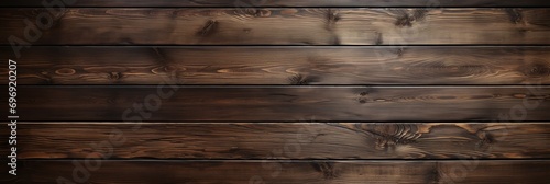 © Ilja, Fototapeta premium Stylish top view of dark wood background with rich and captivating texture for design projects