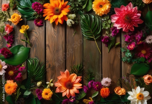 Obraz premium stylish vibrant nature flat lays featuring colorful elements instant digital use enhance aesthetic appeal various design projects, artwork, backdrop