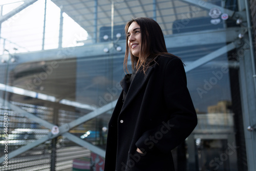 © Ivan Traimak, Fototapeta premium stylish woman anti-crisis manager on the background of a modern office building, organization activity analysis concept