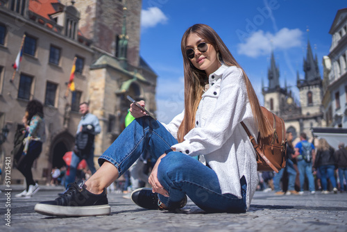 © lorenzophotoprojects, Fototapeta premium Stylish woman sitting on street
