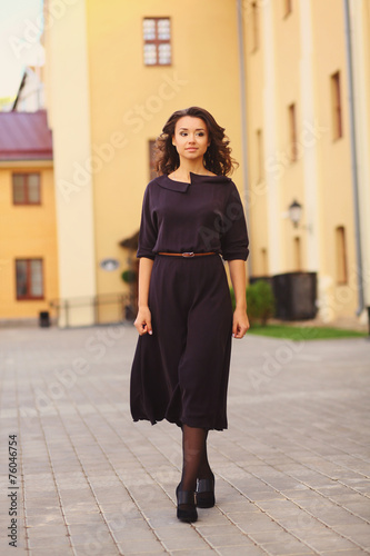 © jozzeppe777, Fototapeta premium Stylish woman walking on the city street