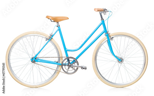 © vladstar, Obraz premium Stylish womens blue bicycle isolated on white