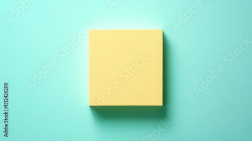 © Khaisan, Fototapeta premium Stylish yellow paper block on light turquoise background, ideal for notes