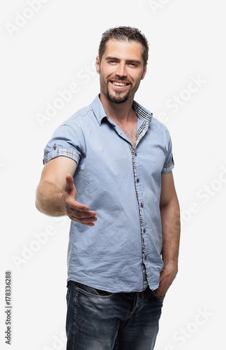 Fototapeta premium stylish young man holds out his hand for a handshake.
