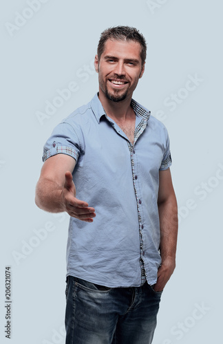 Fototapeta premium stylish young man holds out his hand for a handshake.