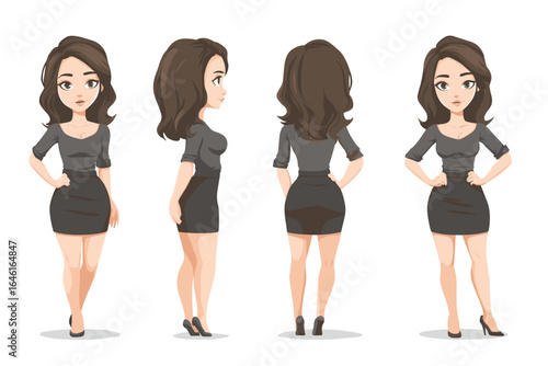 © Bozena, Fototapeta premium Stylish Young Woman Character in Various Poses - Vector Illustration