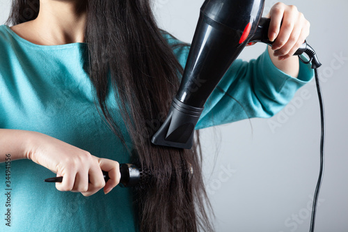 © Alla, Fototapeta premium Stylizacja włosów z suszarką do włosów