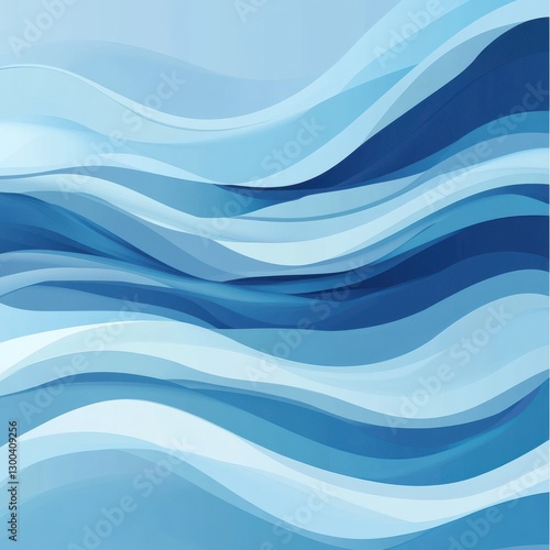 Fototapeta premium Stylized abstract art with flowing blue wave patterns on a soft blue background, modern flat design