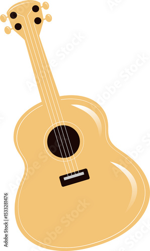 Naklejka premium Stylized acoustic guitar is floating in vector form with transparent background and dark soundhole