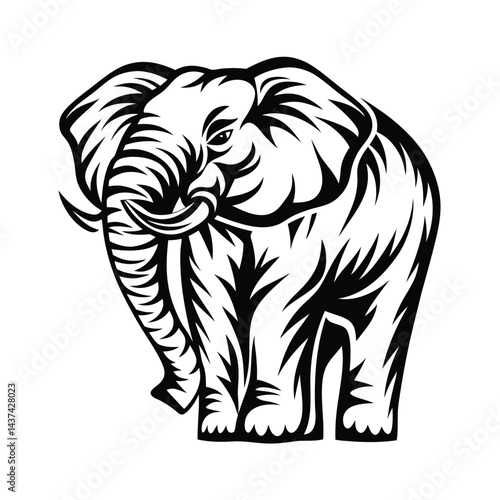 Fototapeta premium Stylized African Elephant Silhouette Illustration, Bold Black and White Design