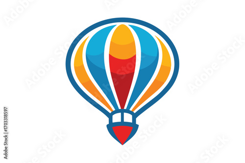 © Brojendra, Naklejka premium Stylized air balloon icon showcases vibrant blue, red, and orange color combination on white