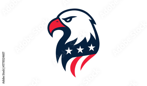 Fototapeta premium Stylized american bald eagle head with stars and stripes