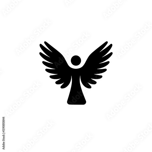 Naklejka premium Stylized angel figure logo design featuring minimalist black and white...