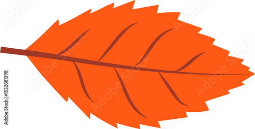 Fototapeta premium Stylized autumn leaf in flat style is showing jagged edges, orange veins on transparent background