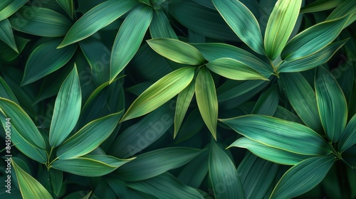 © Praphan, Obraz premium Stylized bamboo leaves in flat design, with vibrant greens and clean lines.