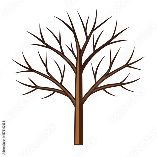 Obraz premium Stylized bare tree with brown trunk and branches on white background