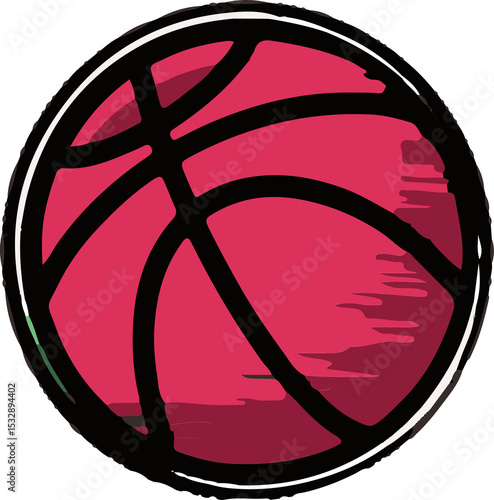 Fototapeta premium Stylized basketball is featuring brush textures, red panels, black seams on...