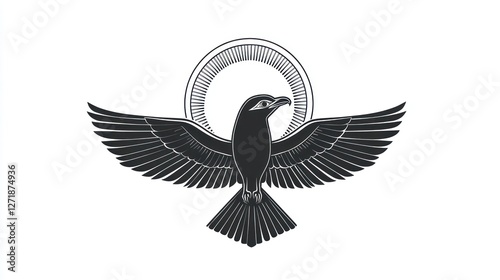 © Mufarokah, Obraz premium Stylized bird of prey, heraldic design, celestial background, graphic illustration, for print or web
