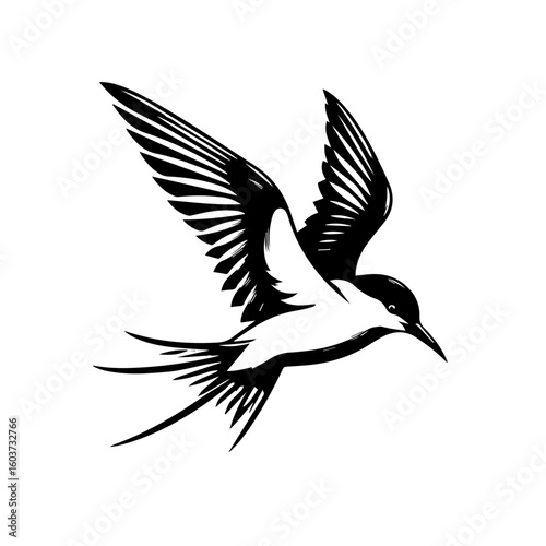 Fototapeta premium Stylized Black and White Bird in Flight 1.