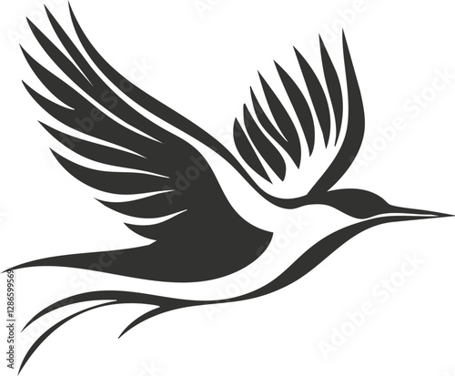 Fototapeta premium Stylized black and white bird silhouette in flight.