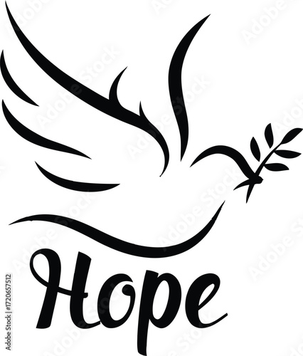 Obraz premium stylized black and white dove bird silhouette with olive branch,minimalist...