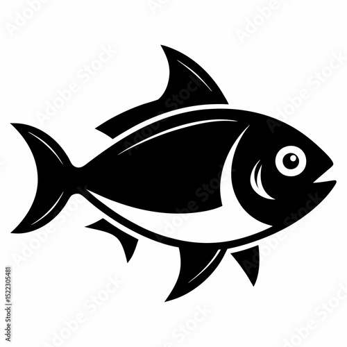 © Tumpa, Obraz premium Stylized black and white fish with open mouth view halloween, vector, silhouette, illustration, horizontal, isolated assets,