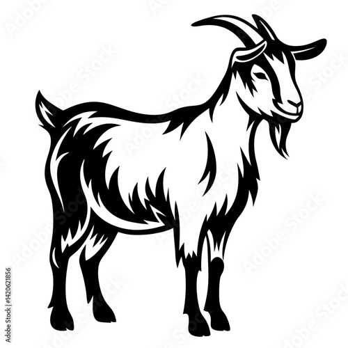 Obraz premium Stylized Black and White Goat Illustration in a Bold and Minimalist Style