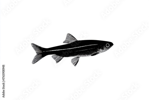 Fototapeta premium Stylized black and white illustration of a fish with sleek body, fins, and fine details, set against a pristine white background for striking contrast and visual appeal