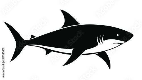 © Bijoy, Obraz premium Stylized Black and White Illustration of a Great White Shark Swimming