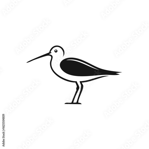 © FryArt, Obraz premium Stylized black and white illustration of a long legged bird with a distinctive long beak standing